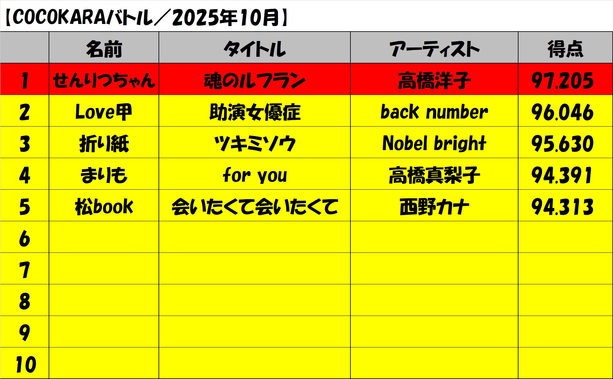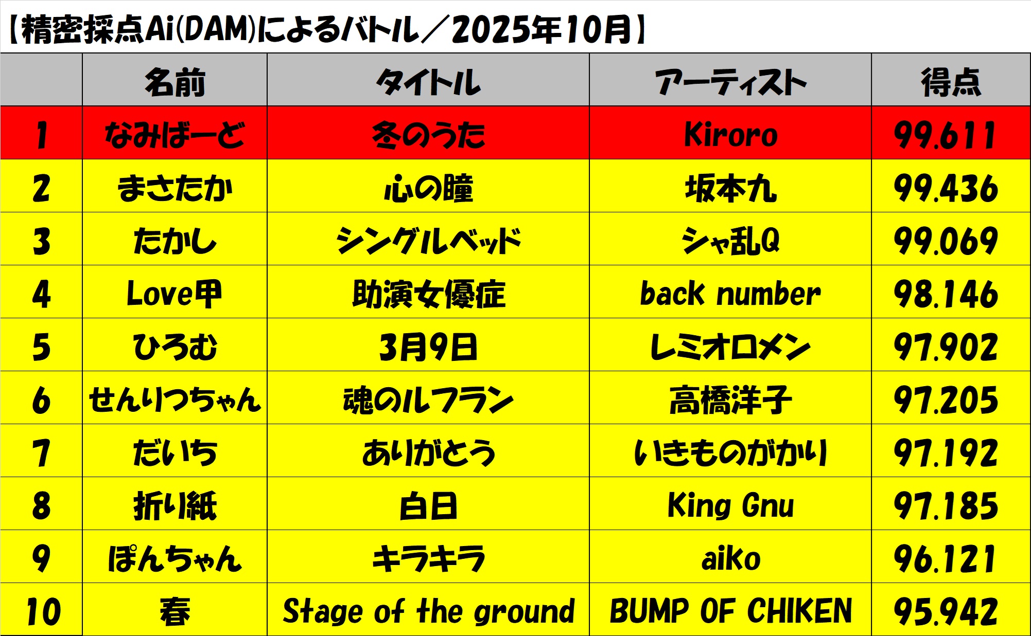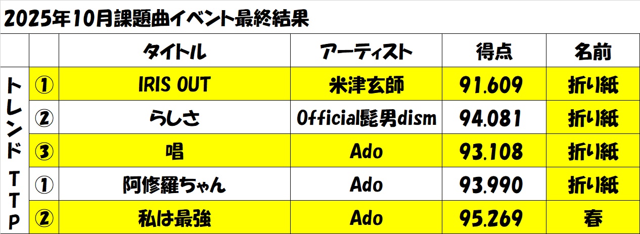 【2025.10.21-10.31】10月カラオケボックスイベント結果