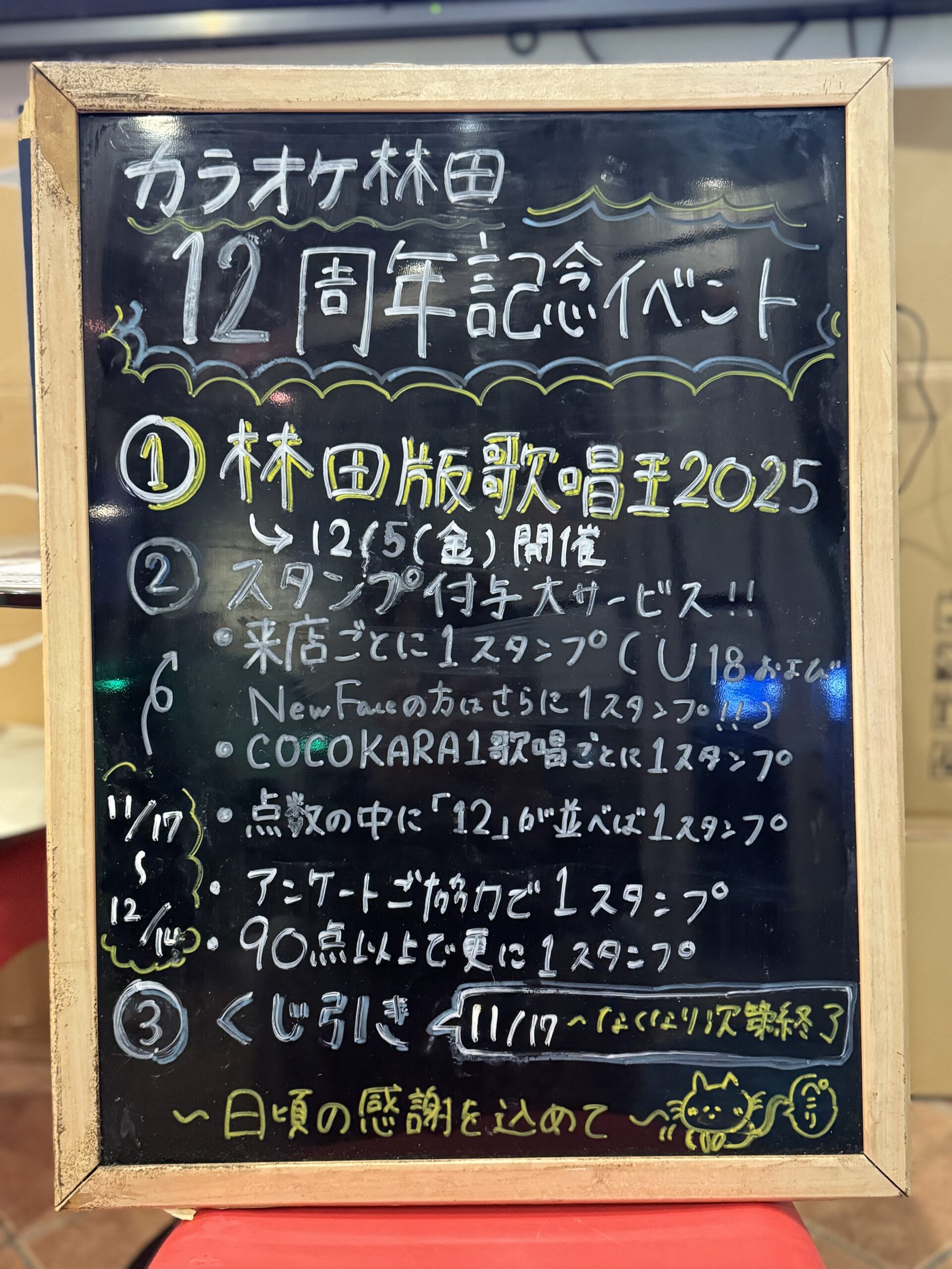 【2025.11.11-11.20】カラオケ林田12周年イベント開催