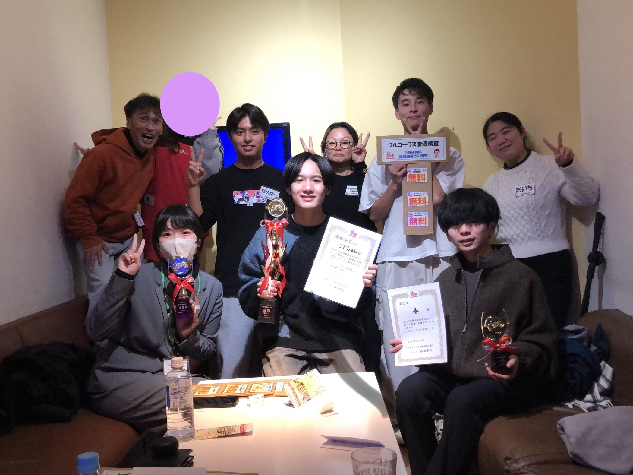 こざしゅんくんが歌唱王(優勝)!熊大文化祭(紫熊祭)のカラオケ大会優勝の実力を遺憾なく発揮され、念願の歌唱王を獲得!また「林田賞」も合せて受賞!おめでとうございます!