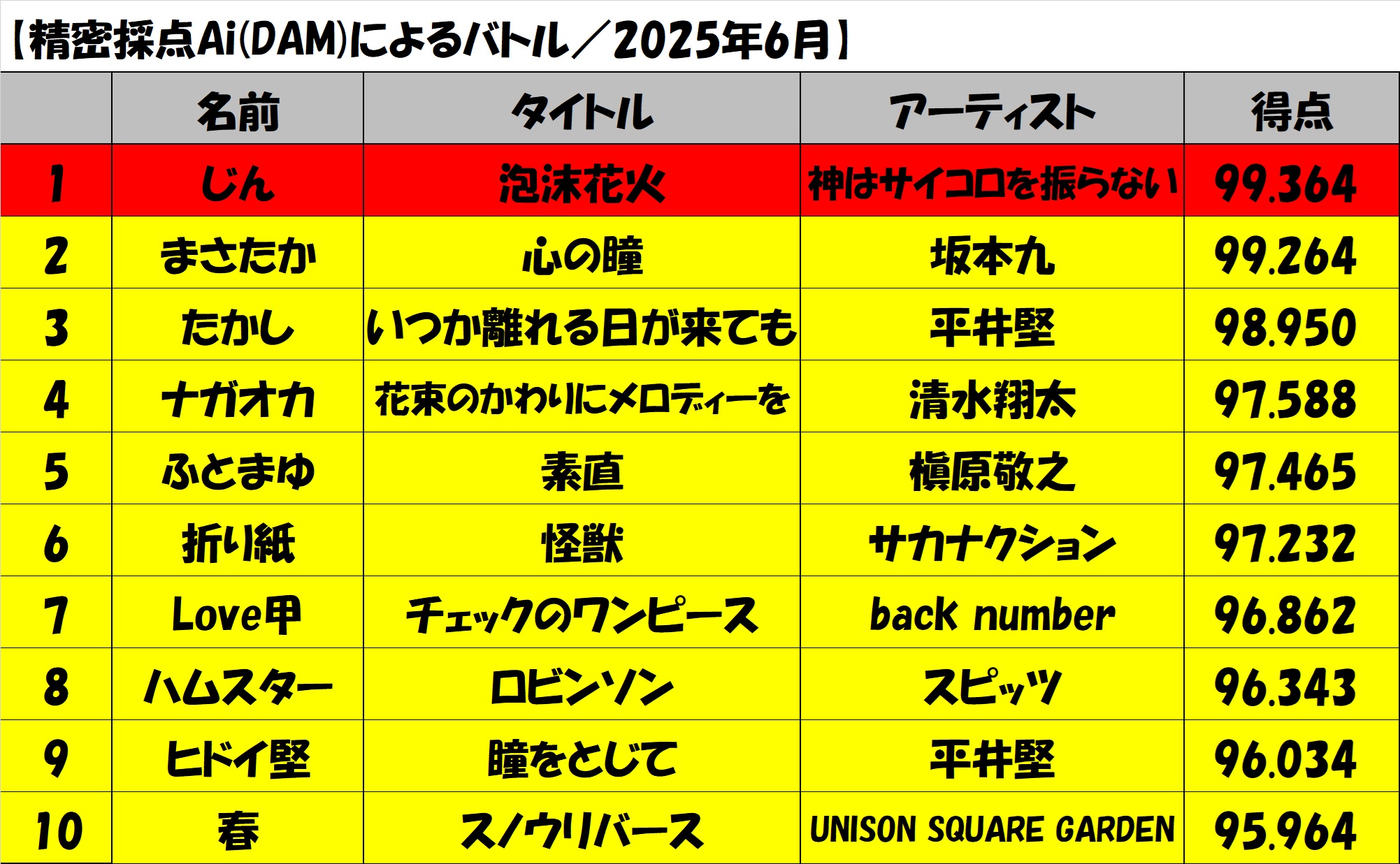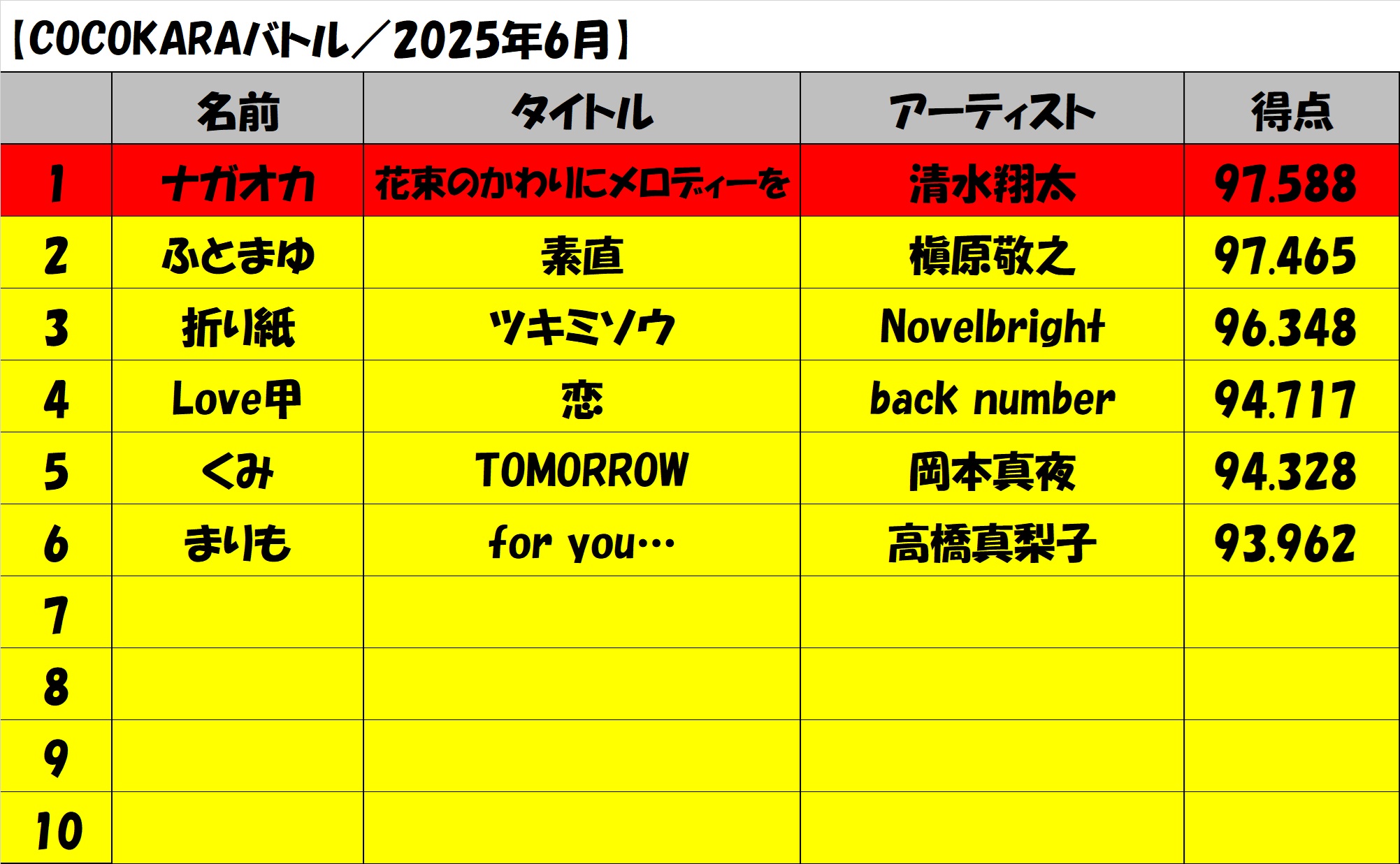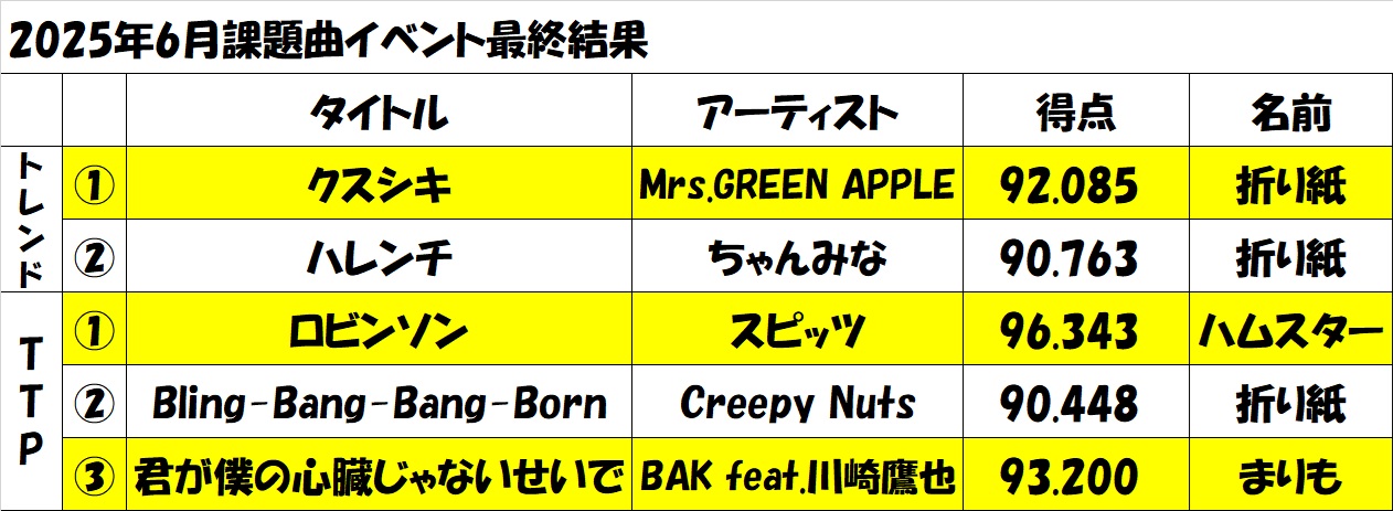【2025.7.1-7.10】6月カラオケボックスイベント結果