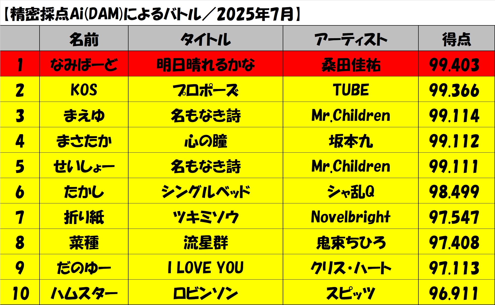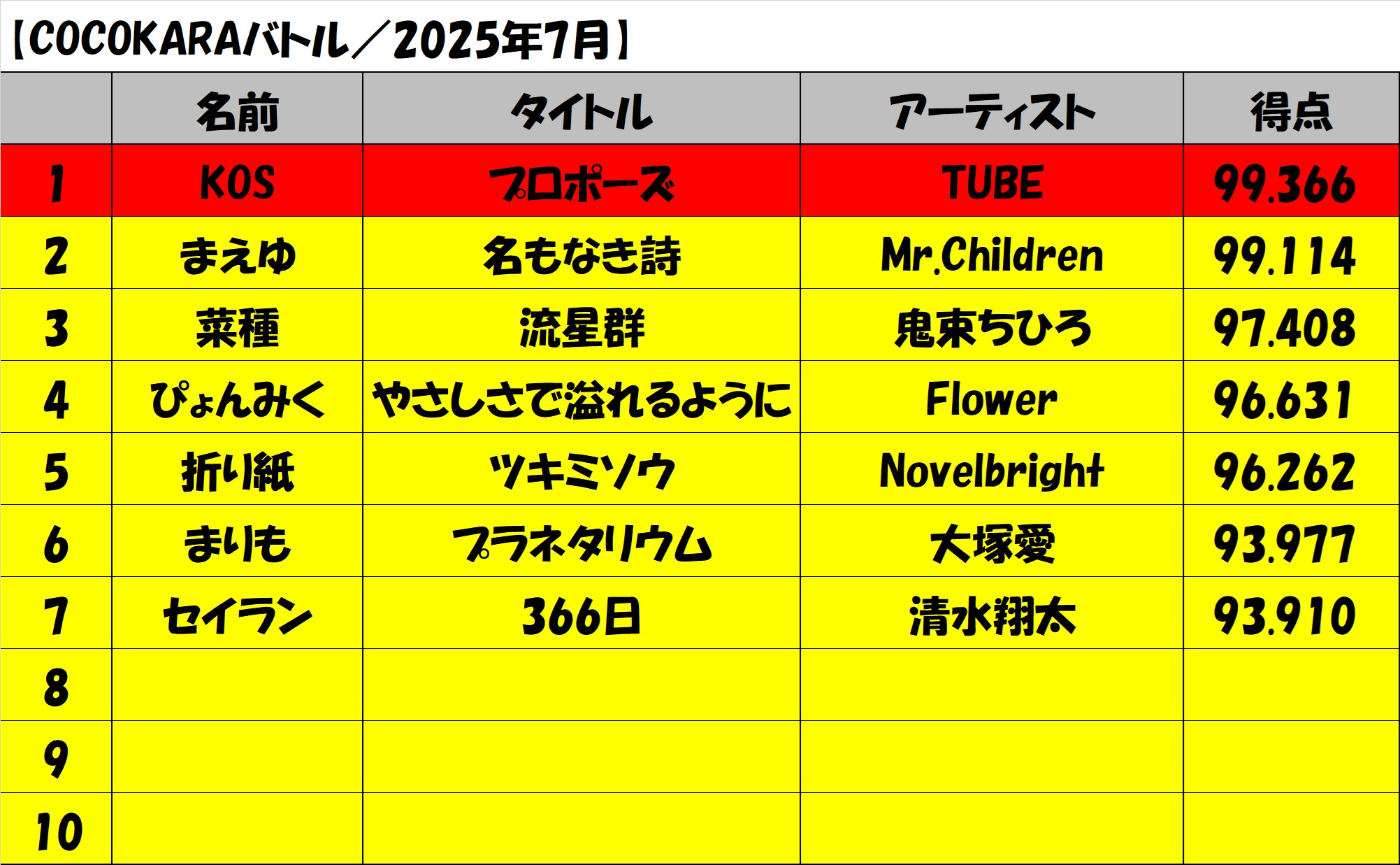 【2025.8.1-8.10】7月カラオケボックスイベント結果