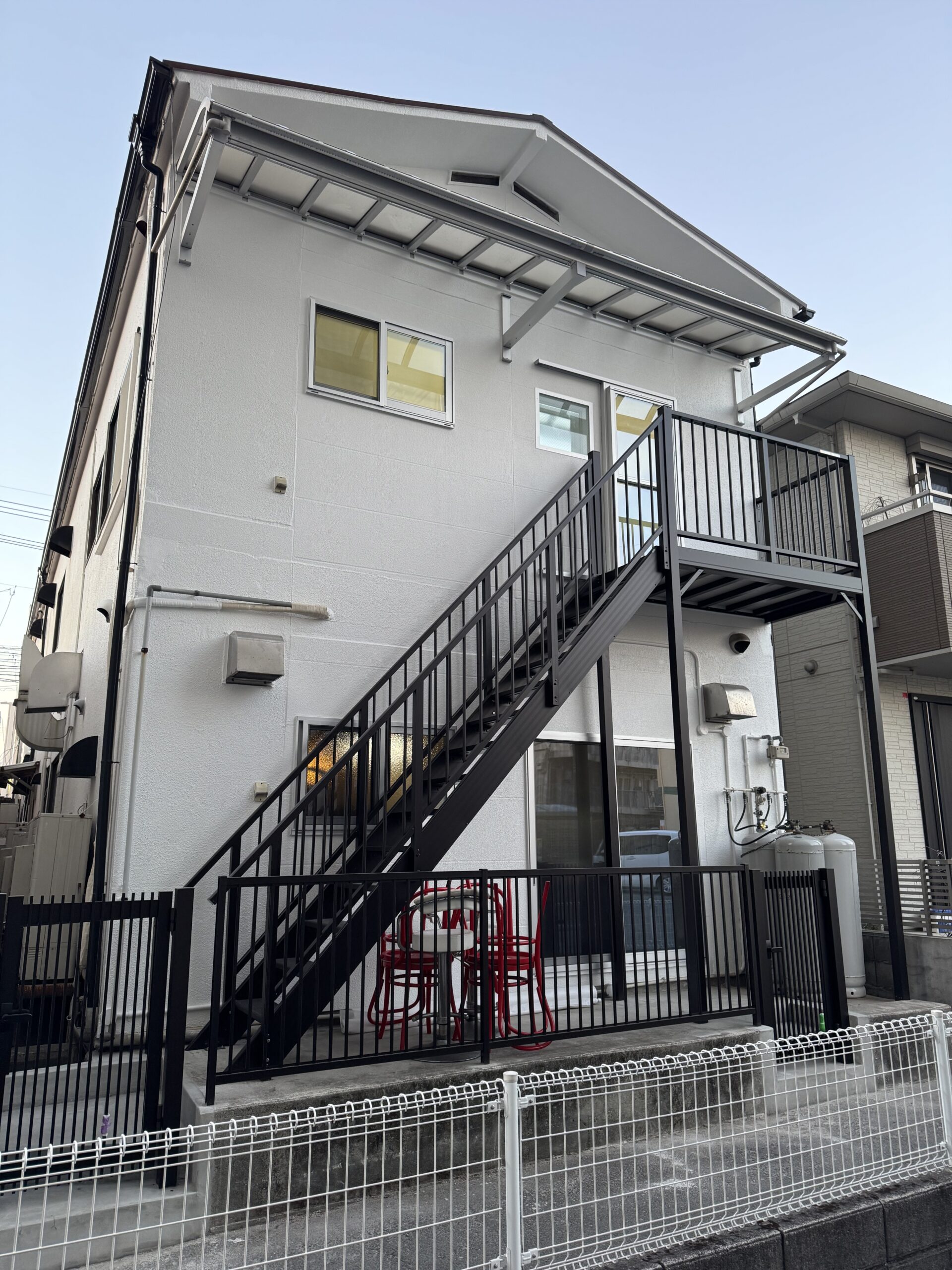 本館建屋に非常階段を設置しました。あくまでも非常用ですので、日常的には使用しませんので、ご注意ください。