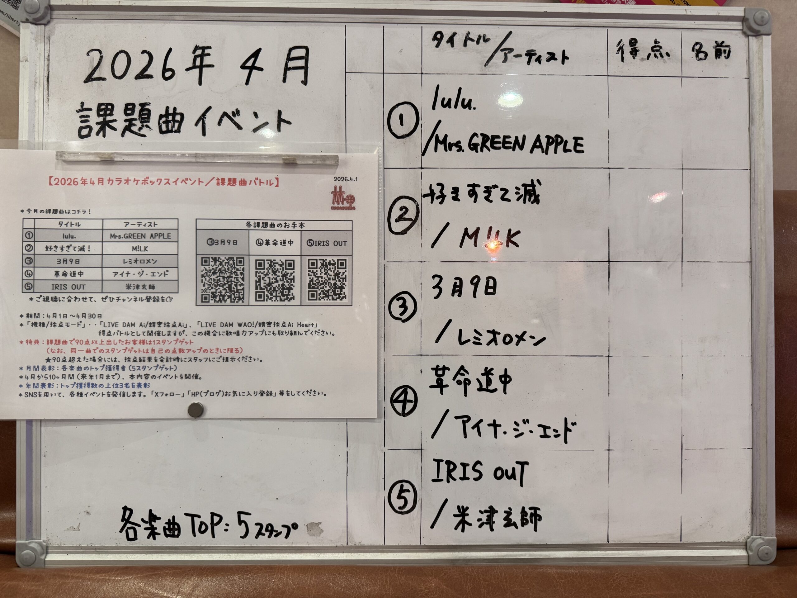*歌った曲数分だけスタンプゲット(会計時にスタッフにご連絡jください)